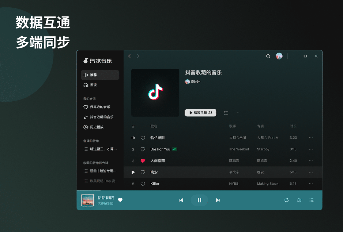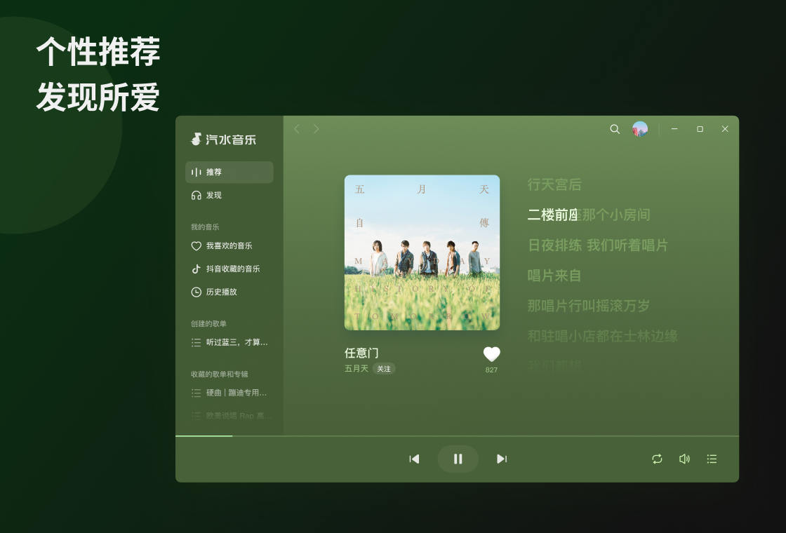 汽水音乐电脑版是一款由抖音 出品的Windows端音乐播放器。